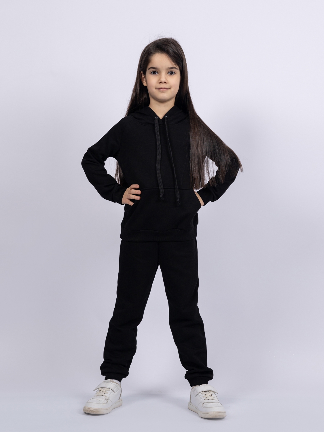 311-Ч. Свитшот с капюшоном + Штаны, хлопок 65%, 35% ПЭ, 3-х нитка ( без начеса) черный 80,86,92