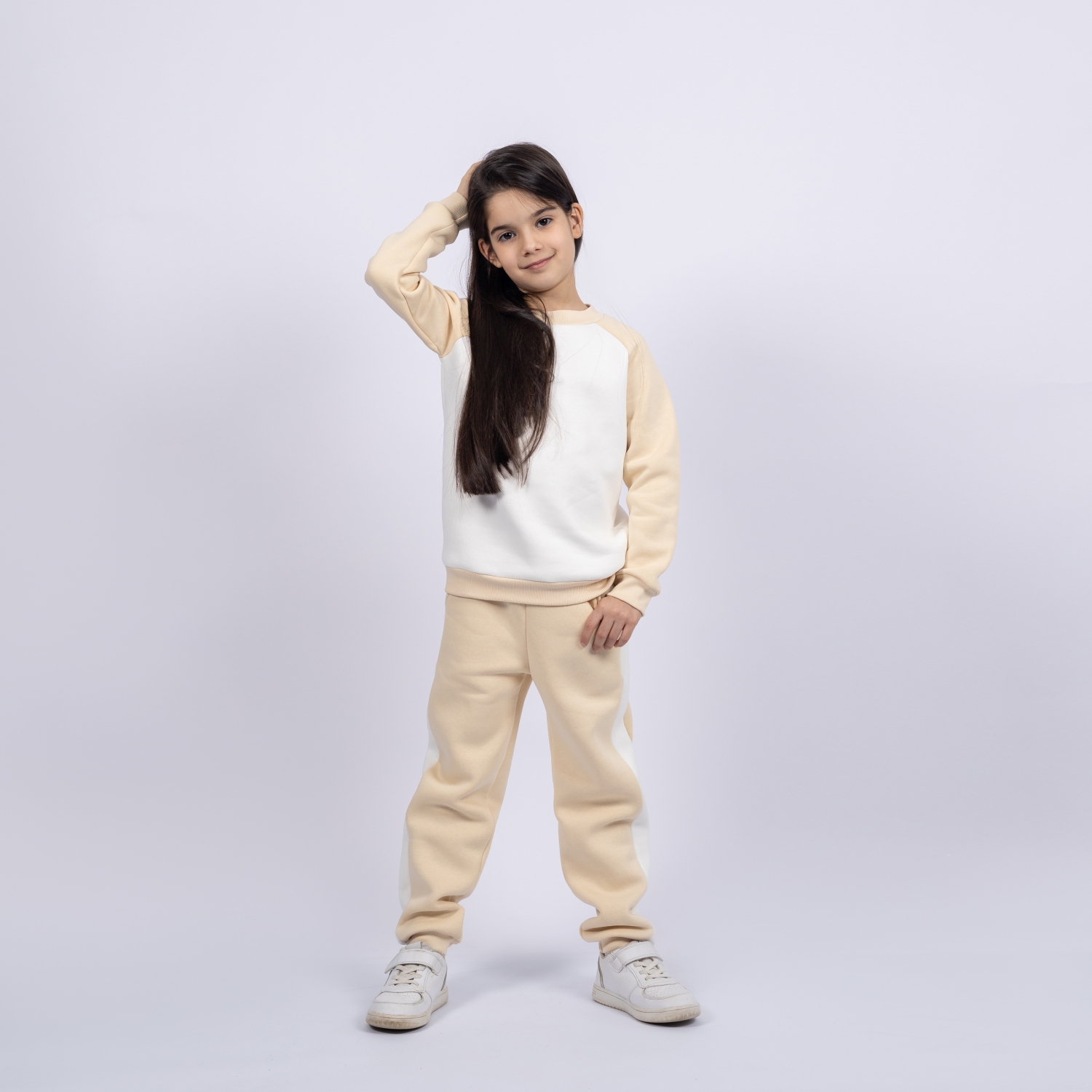 Купить оптом 314-СЛ Свитшот + Штаны, сливочный, хлопок 65%, 35% ПЭ, 3-х нитка (начес) 80,86,92,98,104 в Белгороде